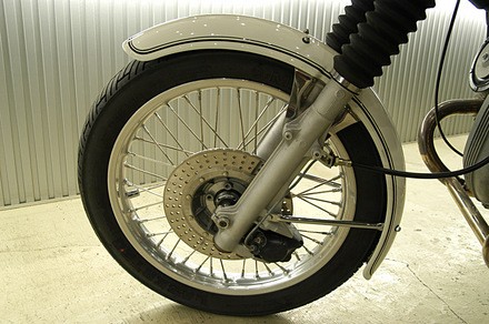 初期のR90/6に、/5のライト&メーター周りを移植した/5仕様です。フレーム&スイングアームパウダーコート済み、ステンレススポーク、新品ディスク、各部リペイント等の丁寧なレストアが施され、大変状態の良い車両になります。エンジン&ミッションも大変好調です。フレームNo、エンジンNoももちろんマッチしております。パワフルなR90/6にクラシカルな/5のライトケース取り付けは、いちからやろうとすると手間とお金のかかるマニアックな仕様。この良さが分かる方へぜひ。現状でも大変好調ですが、詳細に納車整備を施し、2ケ月または2000kmの保証をお付けして納車いたします。プラス10万円にてエンジンOHも承ります。国内新規のため、初回車検は3年となりますのでお得です。