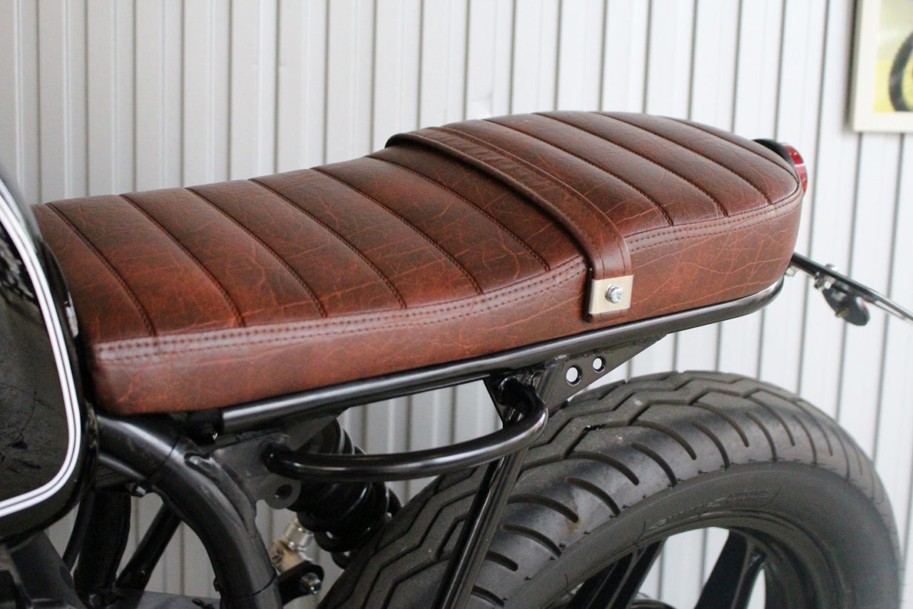 お客様のイメージはワイドなハンドルでシンプルに、シート及びサイレンサーをショートにしてほしいとの依頼。