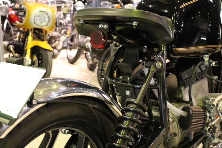 サドルシートに変更し、リアフェンダーをタイヤになるべく沿わせ、アップハンドル等の加工し