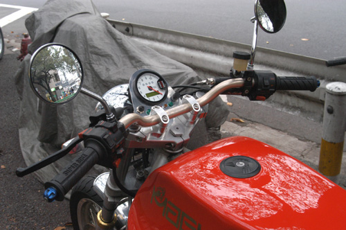 ノーマルはロケットカウル、セパハンという戦闘的なポジションですが、ロングツーリングや街乗りでより扱いやすく、というオーナー様の希望により、ノンカウル、アップハン仕様にカスタム。