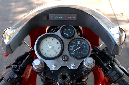 ノーマルの跳ね上がったカウル、シートを撤去し、ロケットカウル、ワンオフオリジナルシート、ワンオフメーターパネル、前後フェンダー等でカスタム。