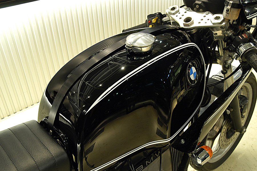 新潟県S様のご依頼により、当店のコンプリートモデルRocket-Rをさらにカスタム。よりスポーティーでコンパクトなBMWとなりました。ツーリングやタンデム時は、シートレールごとごっそりノーマルと付け替え可能。配線もカプラーでワンタッチ。気軽にリア回りを着せ替えできる仕様としました。