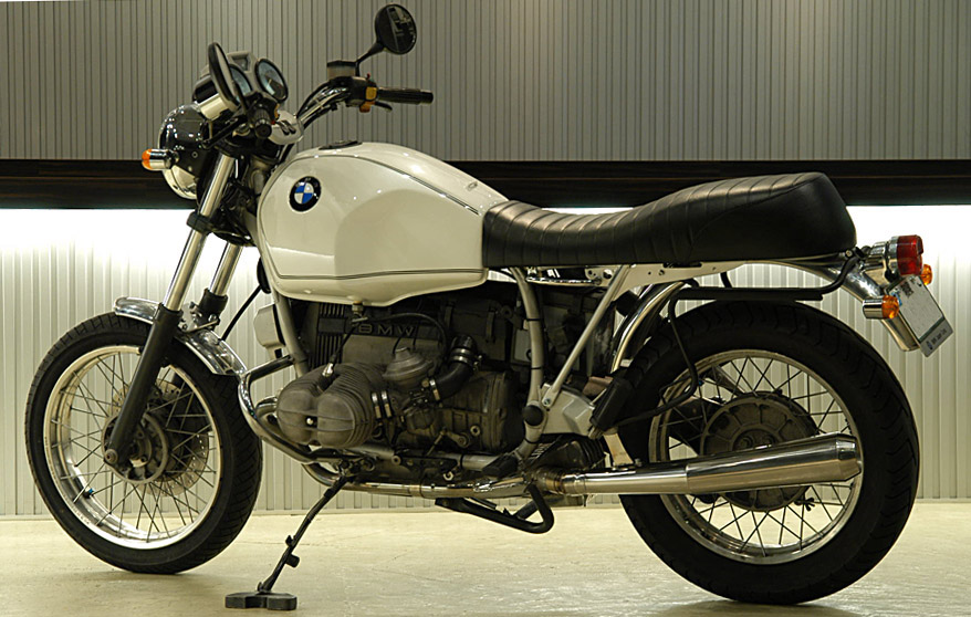 大阪K様のご依頼で、R100Rのライトなカスタムを製作しました。シートレールとフェンダー、シート、マフラー、灯火類程度のカスタムですが、ずいぶんスッキリしたイメージとなります。又、カスタム着手前にオイル漏れ修理やヘッド調整、キャブ調整等一通りの整備も行っております。