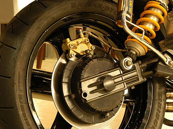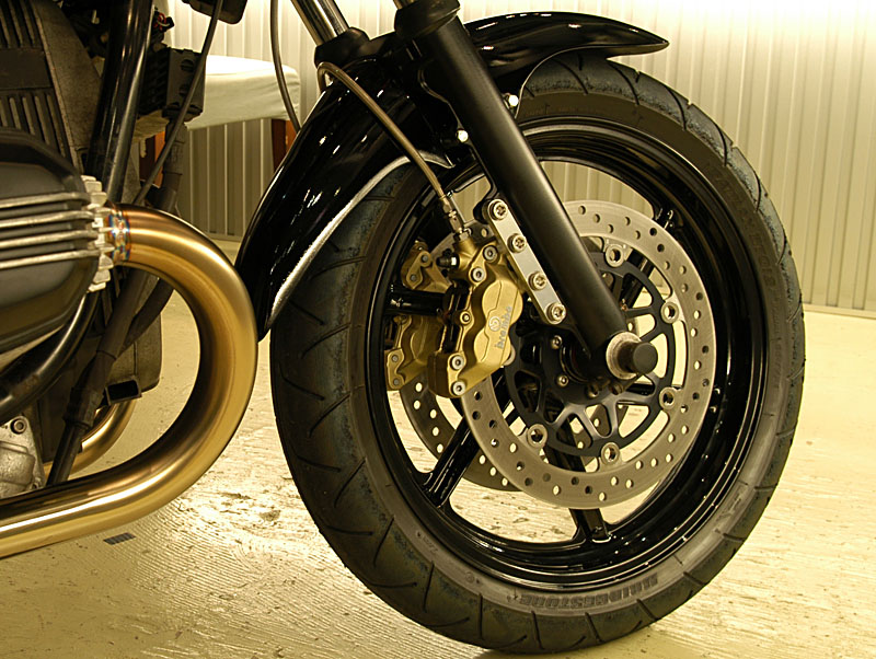 K様のご依頼により、モノレバーR100RSをベースにサーキット走行までを視野に入れたストリートマシンを製作しました。足回りを中心にポテンシャルアップを図っています。