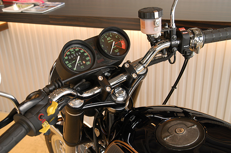 お持ち込みのR100S、カスタム&レストアです。10年以上乗られていなかったこの車両を、お父様から譲り受けられたそうです。復活作業と共に各部OH、カスタムさせていただきました。外装はオーナーSa様のお好みに合わせてカスタム、足回りは将来サーキット走行をも視野に入れたポテンシャルアップを図っています。