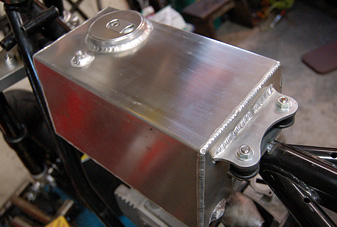 ワンオフパーツも得意分野。写真のようなアルミインナータンクやキャッチタンク、マフラー、各種ステー等ワンオフ製作いたします。