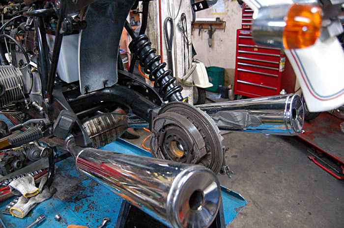 ブレーキシューをバラシてチェック、清掃、面取り。