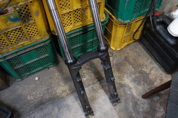 フロントフォークはシールをチェックし、ダメなら交換。