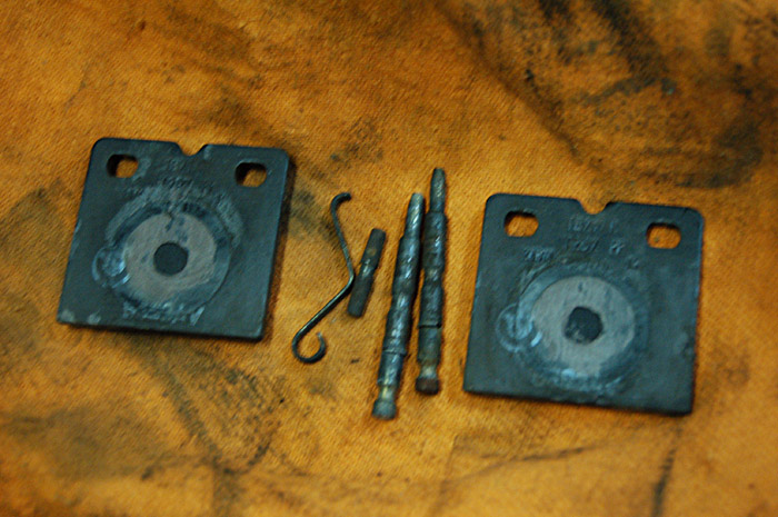 パッドピンはサビを落としてグリスアップし組み付けます。