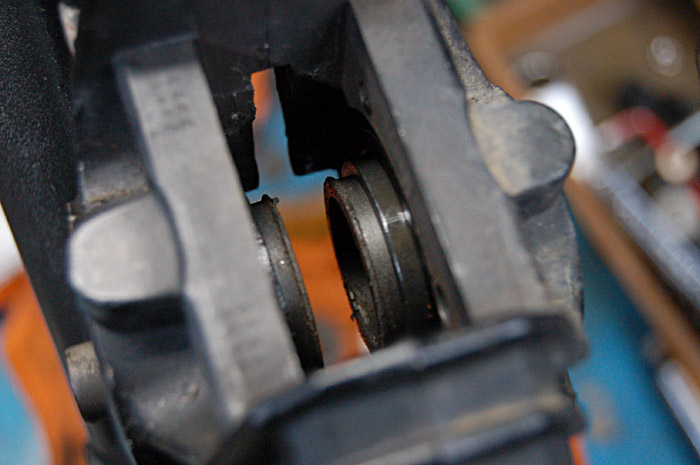 パッド、ダストシールを外してキャリパーピストンを洗浄。