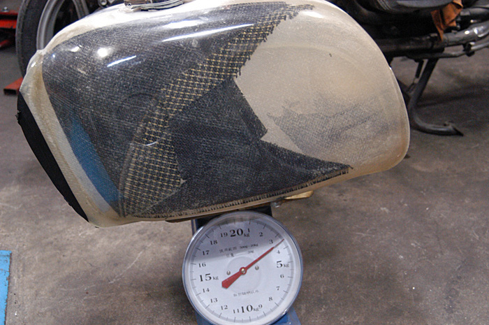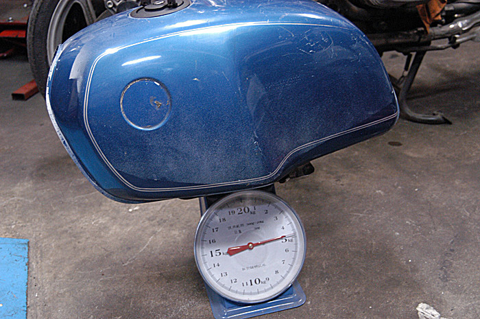 強度を重視したため、軽量化は本来の目的ではありませんが一応計測したところ、ノーマル比で約1.5kgの軽量化となります。車体上方での軽量化はけっこう効きますよね。ガソリン容量はモノレバー純正とほぼ同じだけ確保しました。