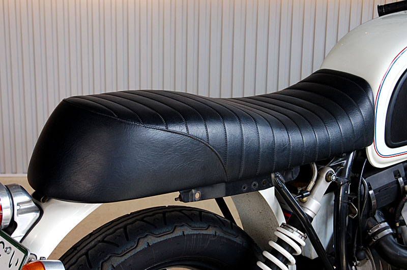 ノーマルの重い印象のあるシートカウル付きシートと交換すれば、2本サス”スラッシュ系”を彷佛させるフォルムが実現します。実用性にもこだわり、シート高はあえて純正と同じとし、ハンドリングの悪化を防止。