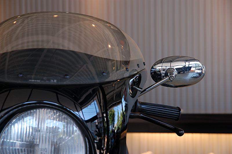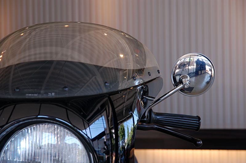 純正ビキニカウル+丸形ミラーヘッド(SA-9廃盤)の組み合わせ例。